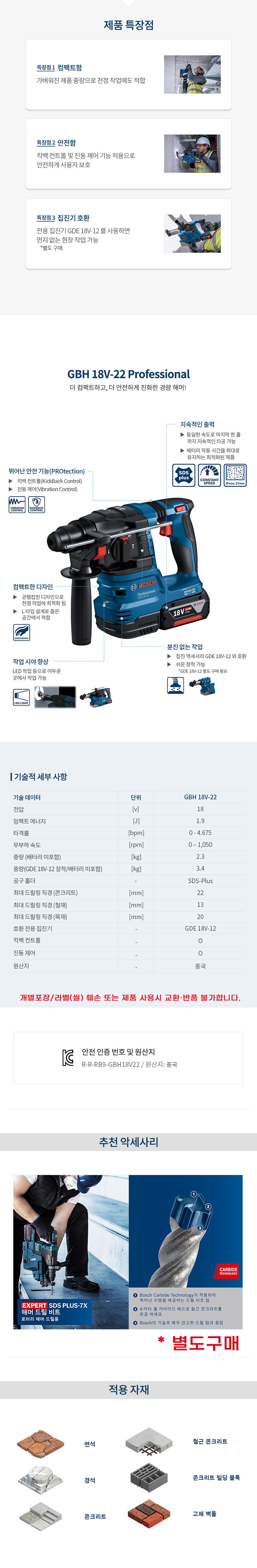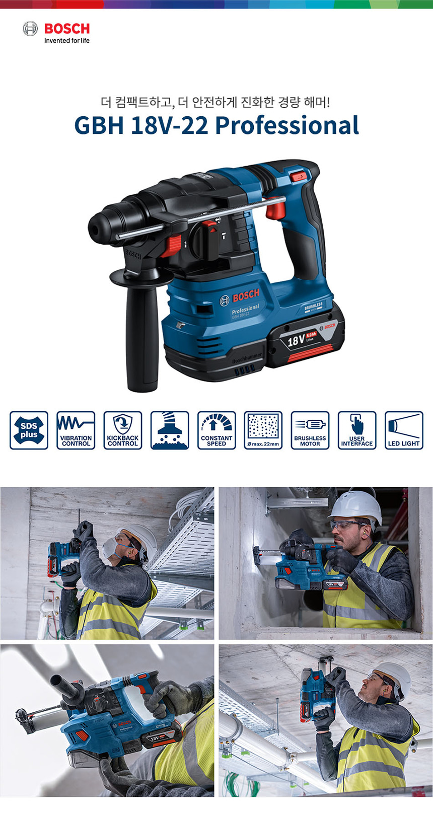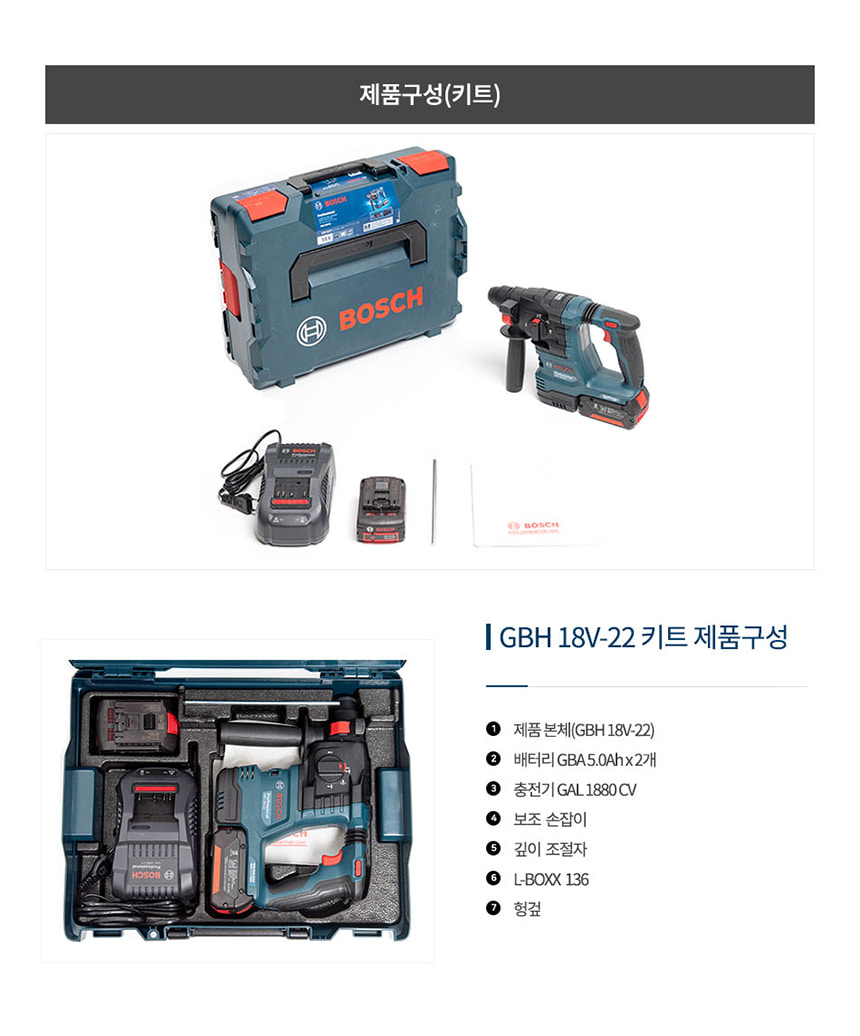 보쉬 GBH 18V-22 SDS plus 충전 해머 드릴 5.0Ah 배터리 세트 06119240B1