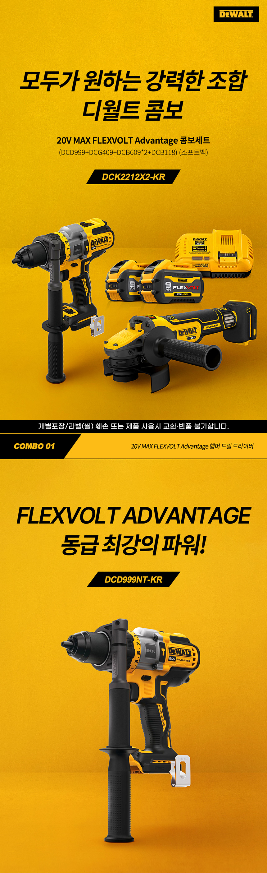 디월트 20V DCK2212X2 플렉스볼트 콤보 세트 DCD999 햄머 드릴 DCG409 그라인더