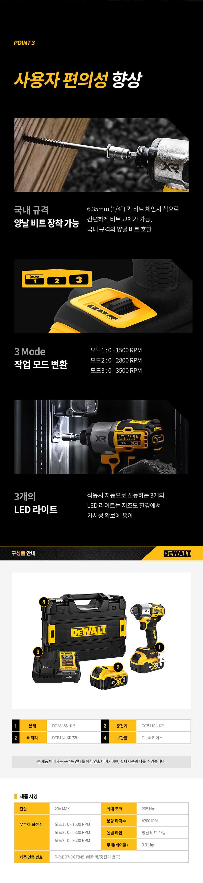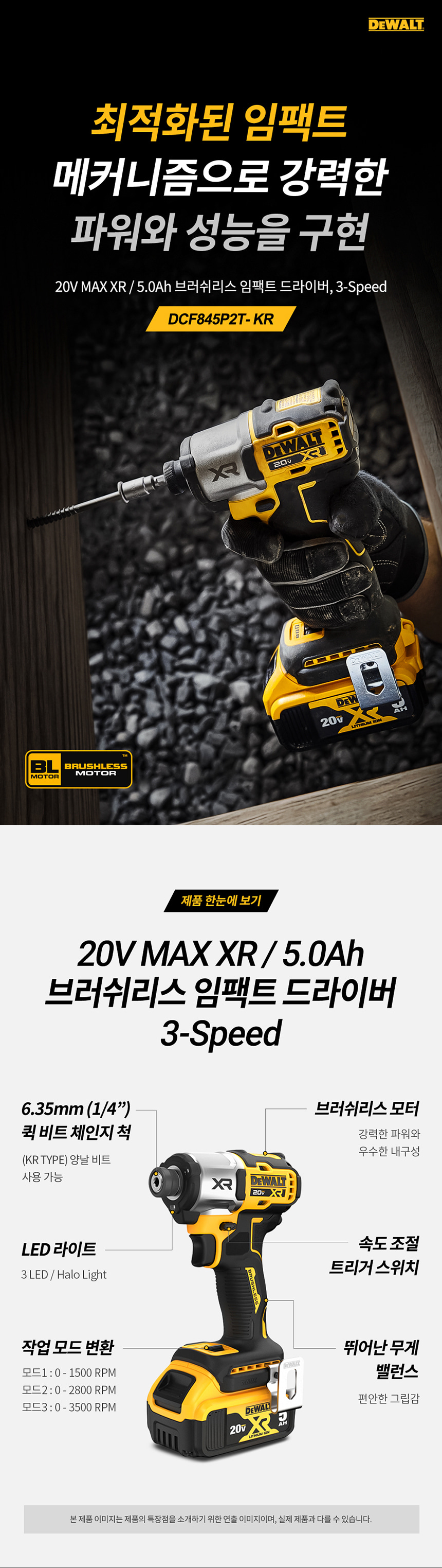 디월트 20V MAX XR 5.0Ah 충전 임팩트 드라이버 배터리 세트 DCF845P2T