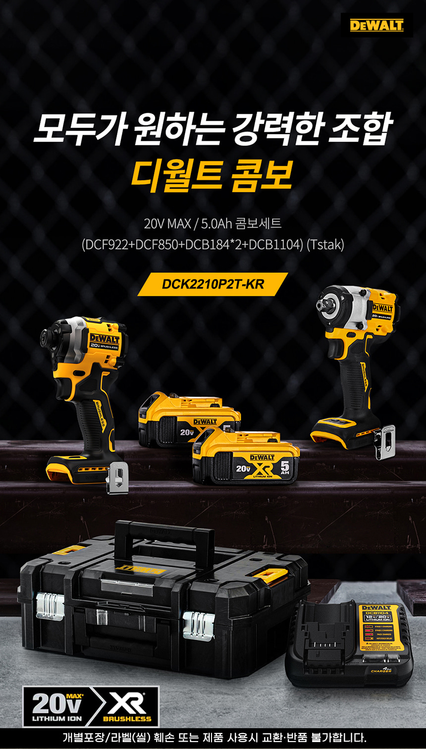 디월트 DCK2210P2T 20V MAX 5.0Ah 콤보세트 DCF922 DCF850 임팩트 렌치 드라이버