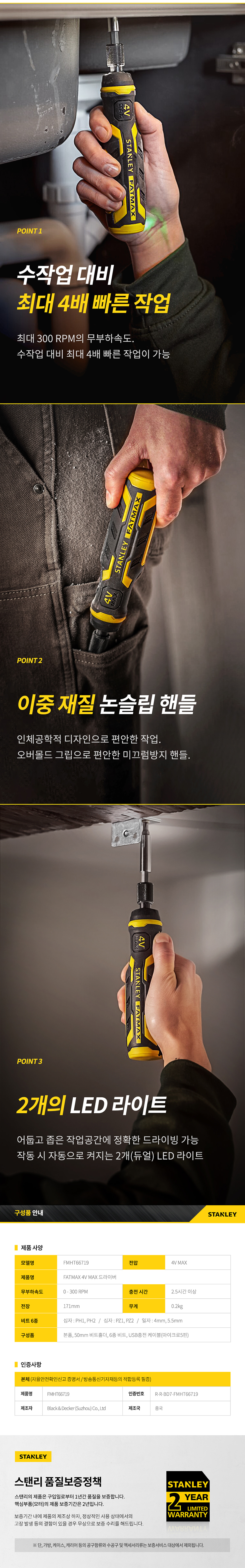 스탠리 팻맥스 4V MAX 충전 스크류 드라이버 FMHT66719 가정용 비트 포함