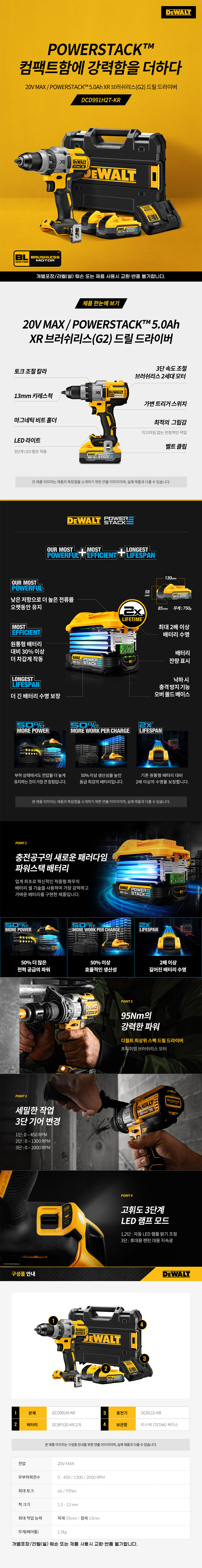 디월트 20V MAX 파워스택 5.0Ah XR 프리미엄 브러쉬리스 G2 드릴 드라이버 세트 DCD991H2T