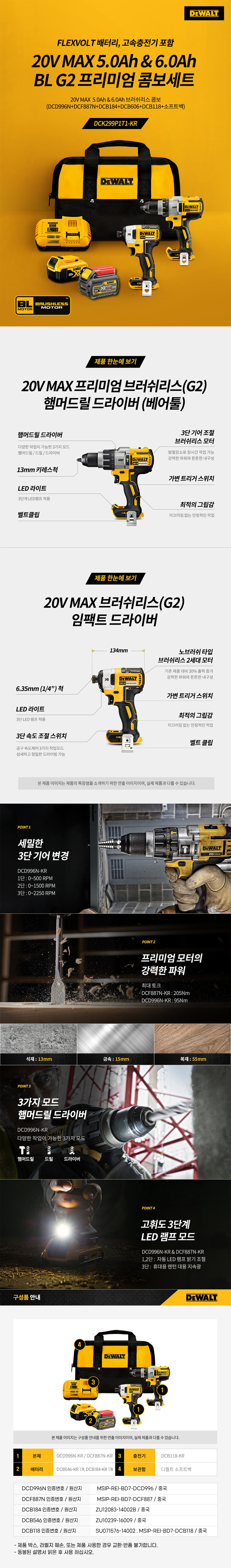 디월트 DCK299P1T1 충전 콤보 세트 BL 전동 햄머 드릴 임팩 드라이버 18V 54V 6.0Ah