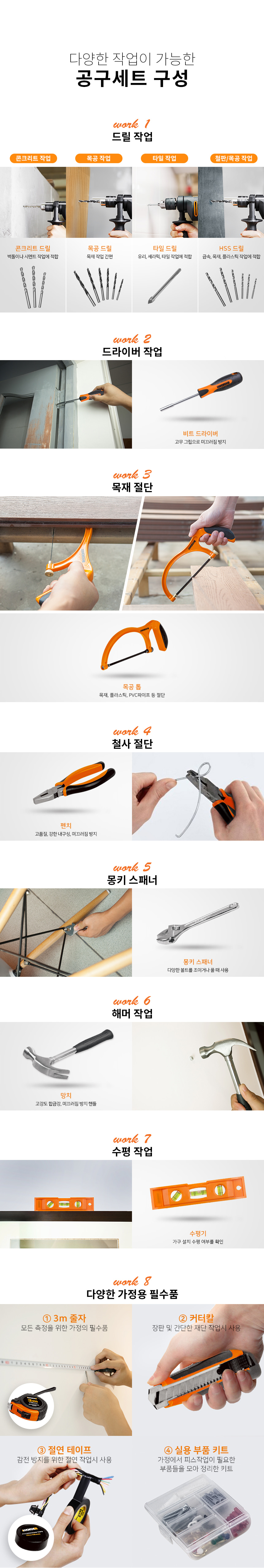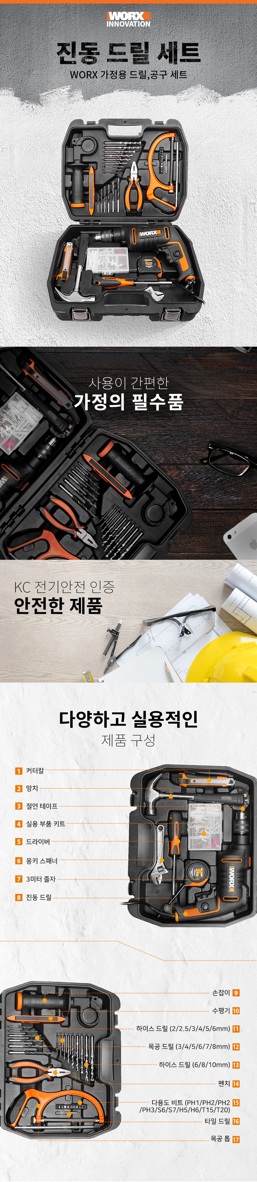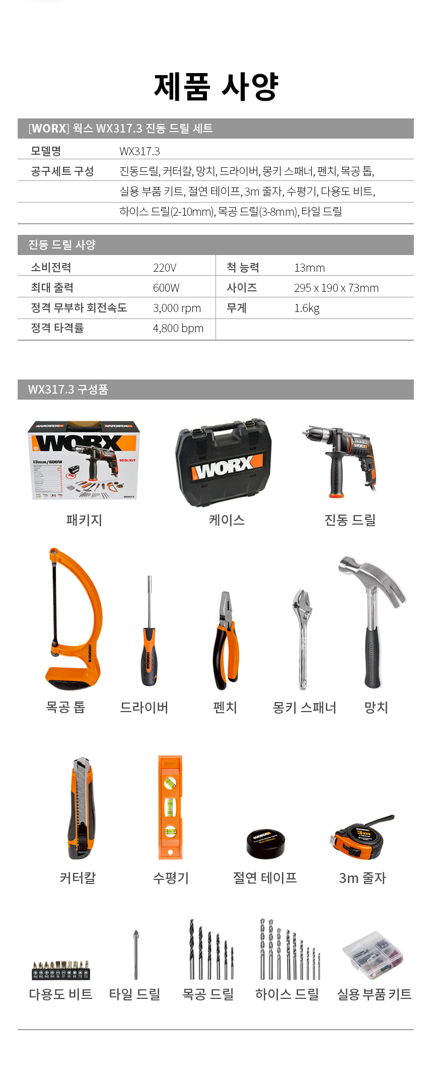 웍스 WX317.3 600W 전기 임팩 드릴 액세서리 세트 가정용 공구 비트 톱 망치 몽키