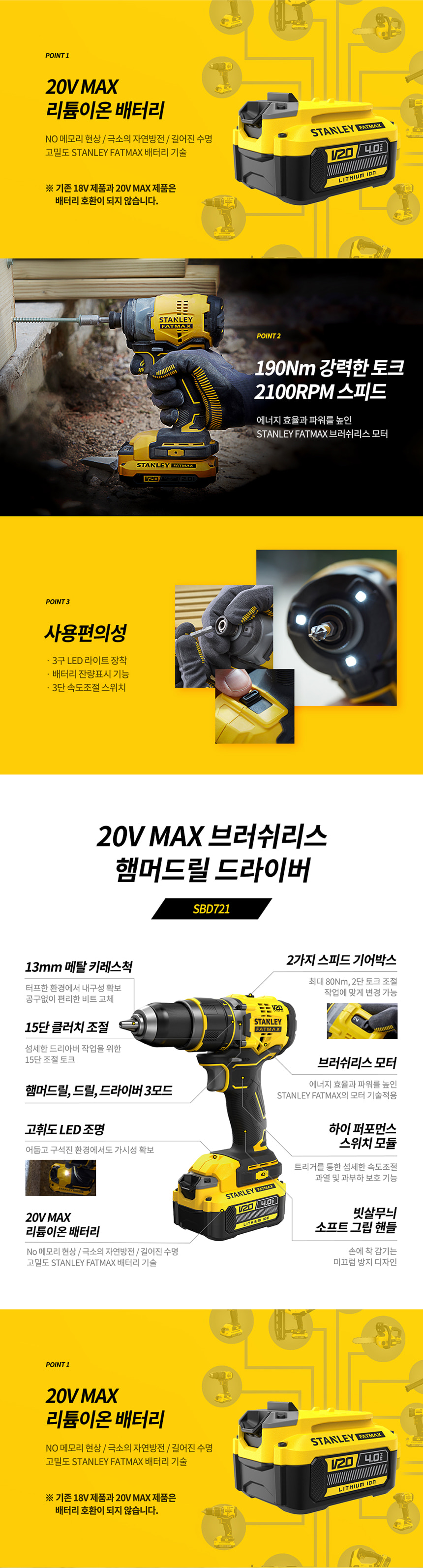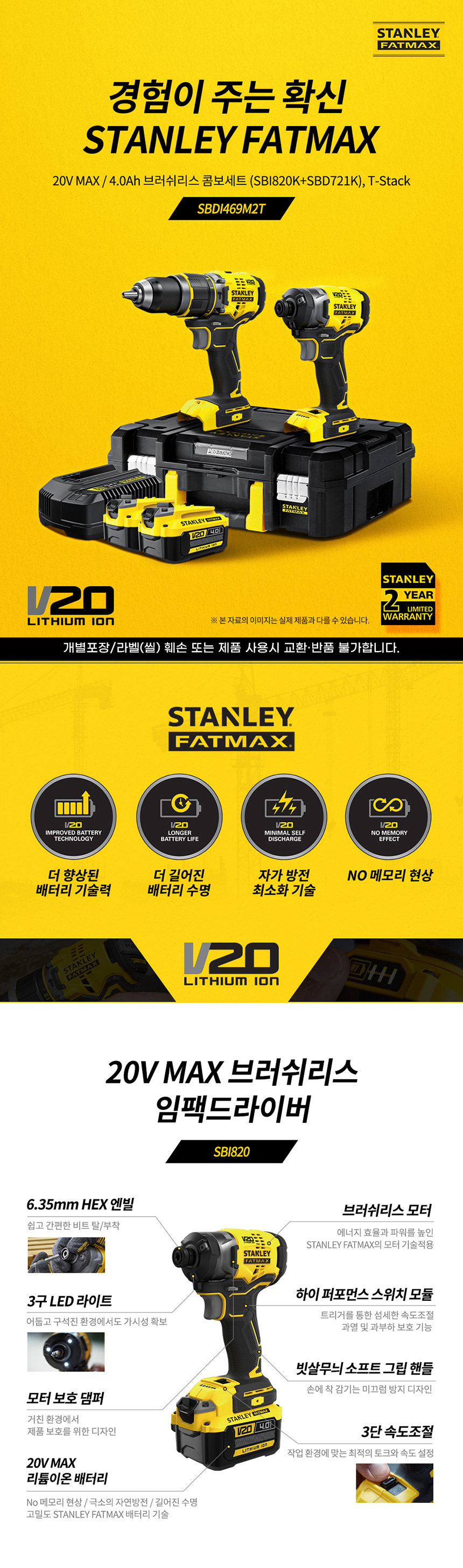 스탠리 20V MAX 4.0Ah 브러쉬리스 콤보세트 SBDI469M2T
