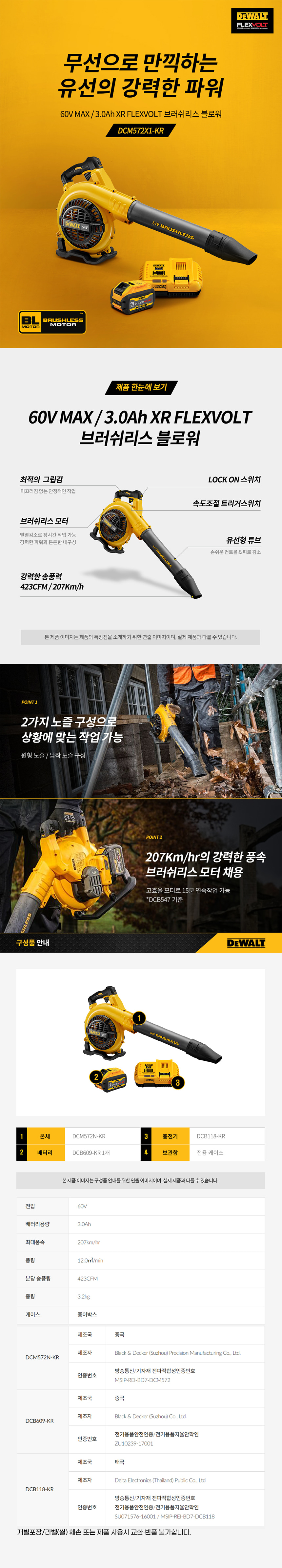 디월트 54V FLEXVOLT 브러쉬리스 충전 블로워 세트 DCM572X1 송풍기 브로워 낙엽 눈 먼지 청소