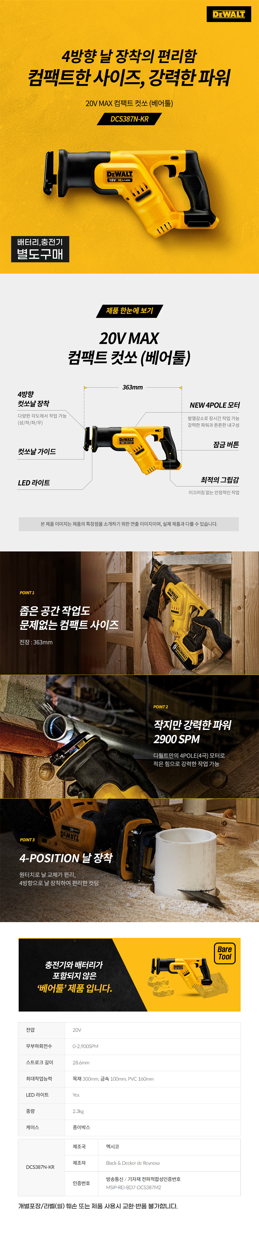 디월트 18V 충전 컴팩트 컷쏘 컷소 베어툴 DCS387N 금속 목재 절단