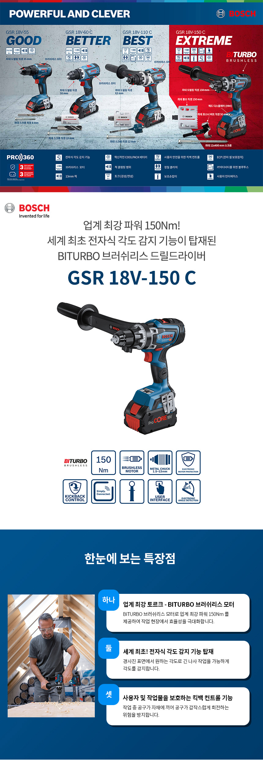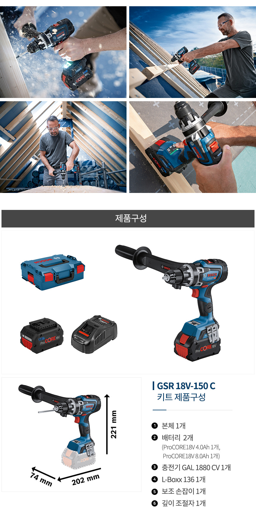보쉬 GSR 18V-150 C 충전 드릴 드라이버 배터리 포함 06019J50B0