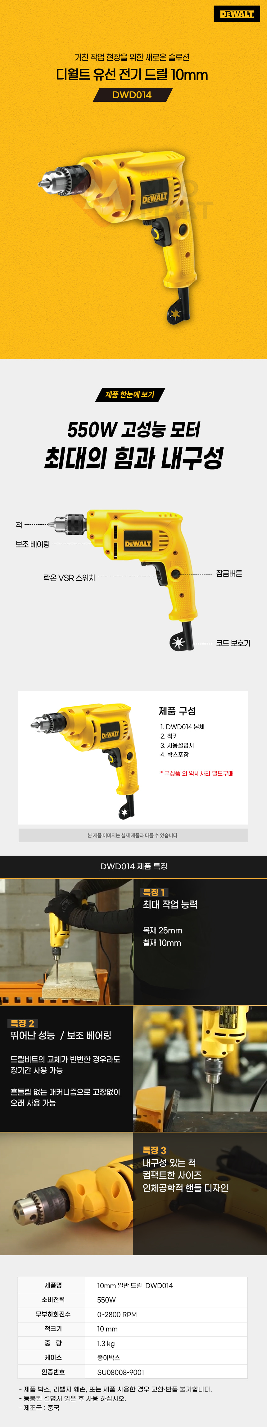 디월트 DWD014 유선 전기 드릴 전동 드라이버 목재 철재10mm