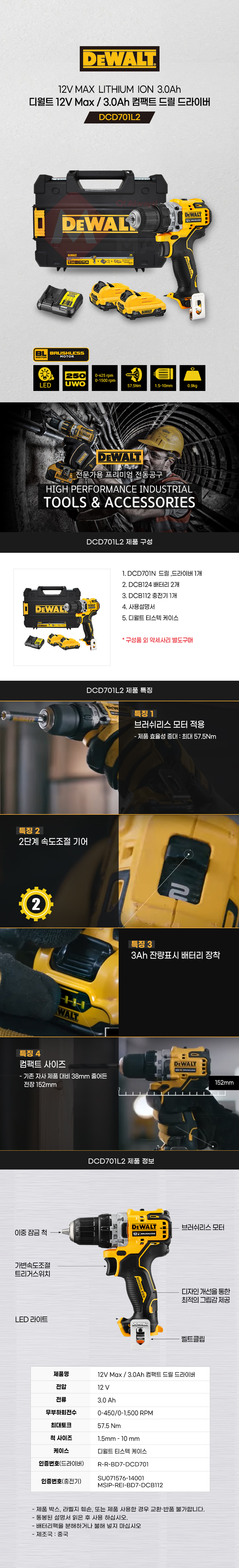 디월트 12V Max 3.0Ah 컴팩트 드릴 드라이버 DCD701L2