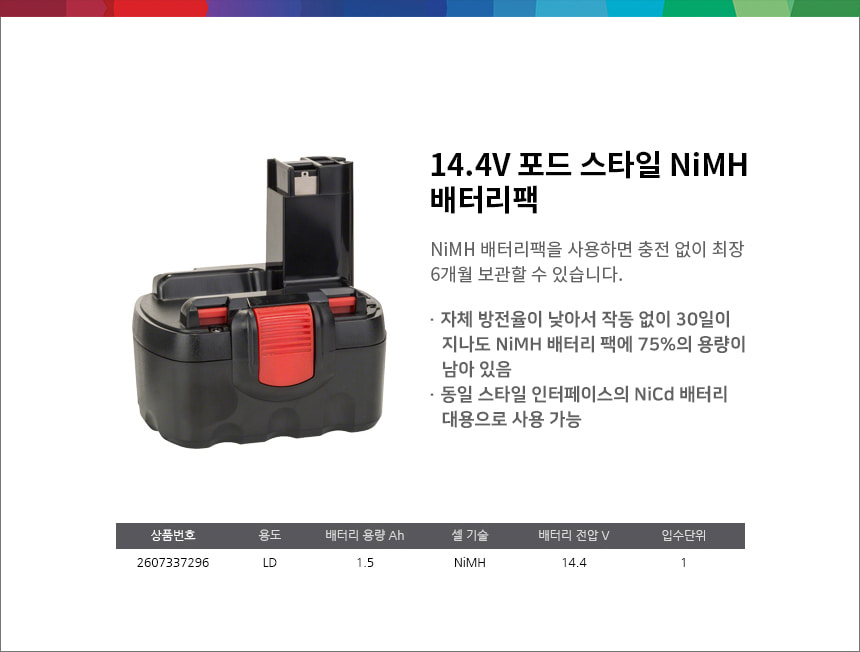 보쉬 NI-MH 14.4V 1.5Ah O pack 배터리 2607337296