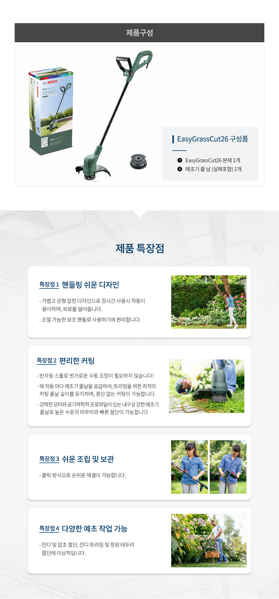 보쉬 가든툴 전기 예초기 06008C1JB1 EasyGrassCut 26 유선 제초기 정원 잔디 관리