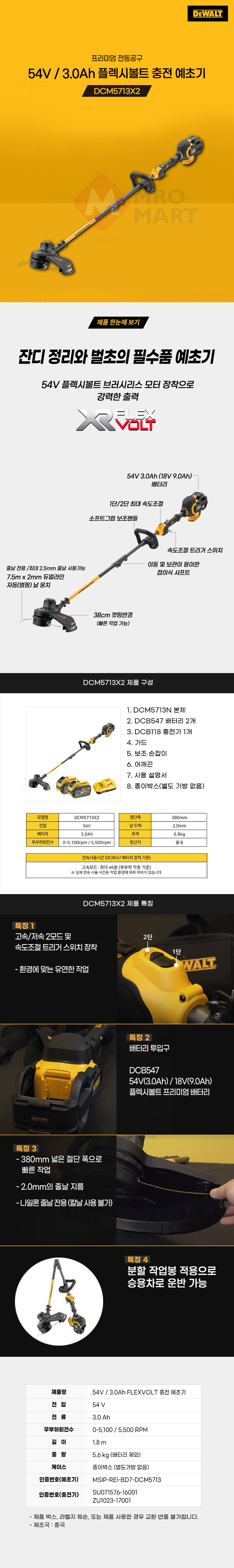 디월트 54V 3.0Ah 플렉스볼트 줄날전용 충전 예초기 DCM5713X2