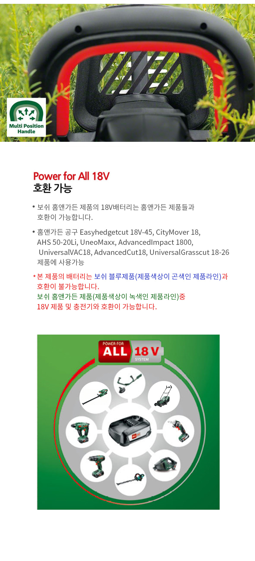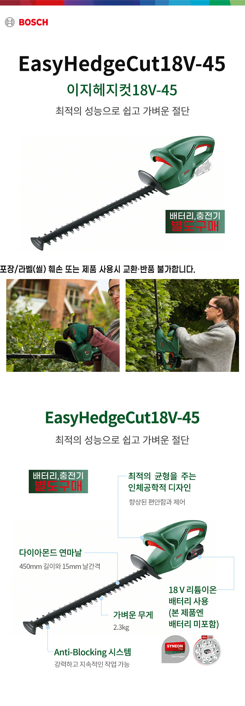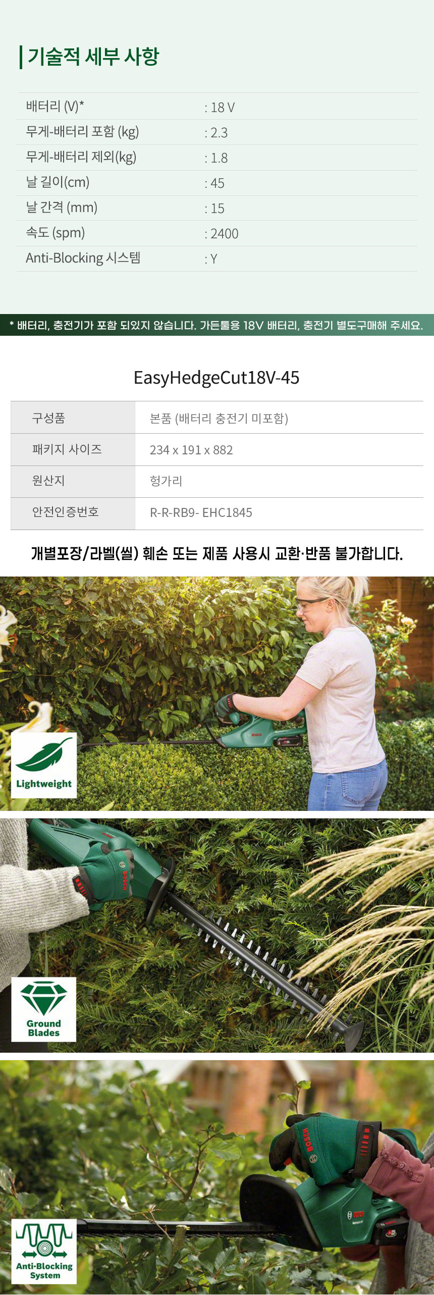 보쉬 EasyHedgeCut 18-45 충전 헤지 커터 베어툴 배터리 미포함 0600849HK0 전정기 조경톱 가지 치기