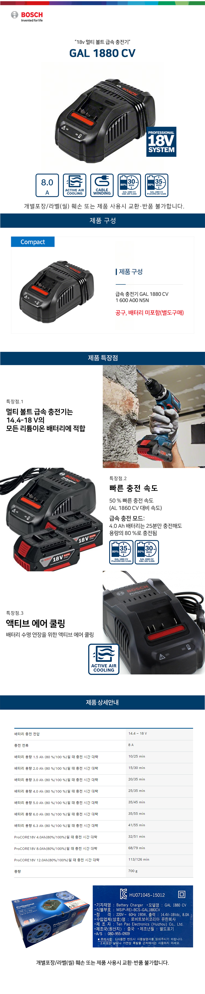 보쉬 GAL1880CV 배터리 급속충전기 1600A00N5N