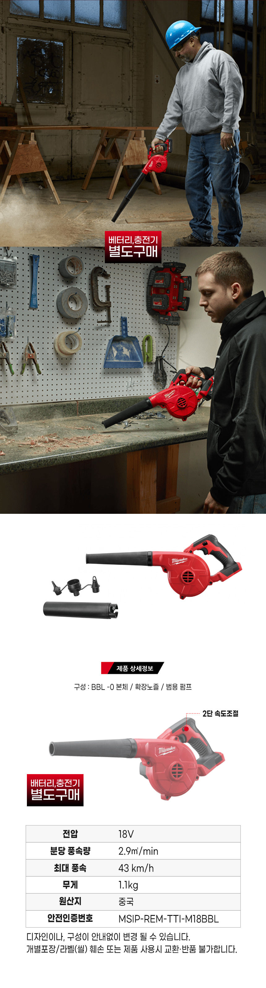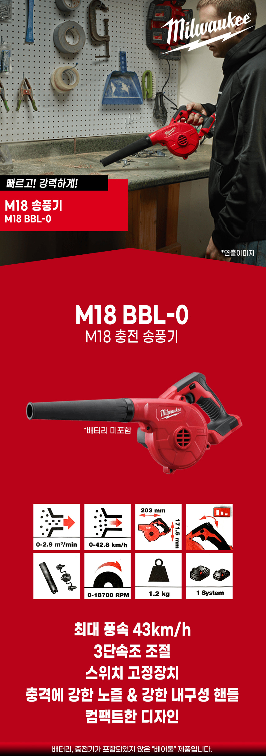 밀워키 18v 충전 송풍기 베어툴 M18 BBL-0 블로워 브로워 청소 낙엽 눈 세차