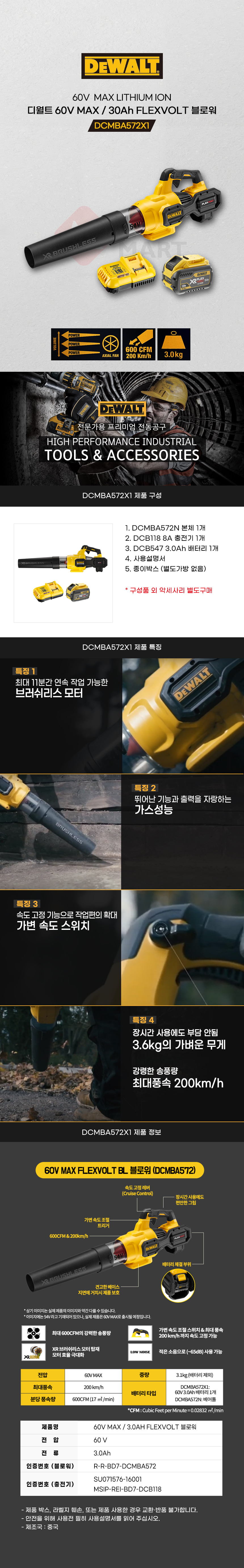 디월트 60V 54V MAX 3Ah 플렉스볼트 블로워 DCMBA572X1 송풍기 브로워 낙엽 눈 먼지 청소