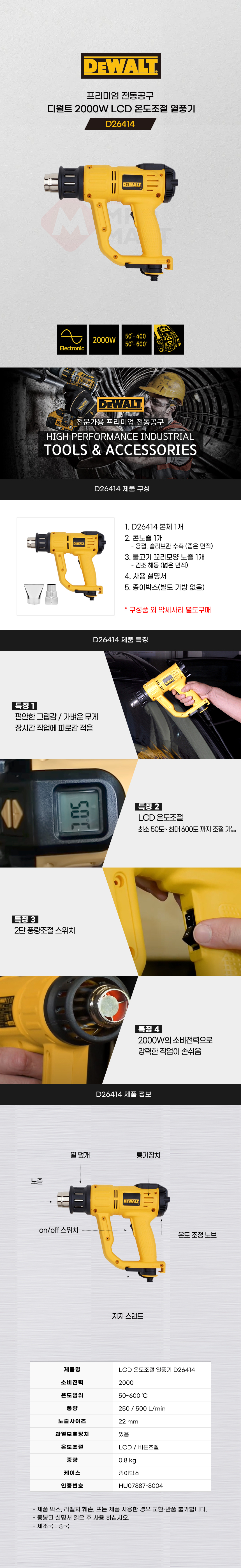 디월트 2000W LCD 온도 조절 소형 히팅건 열풍기 D26414