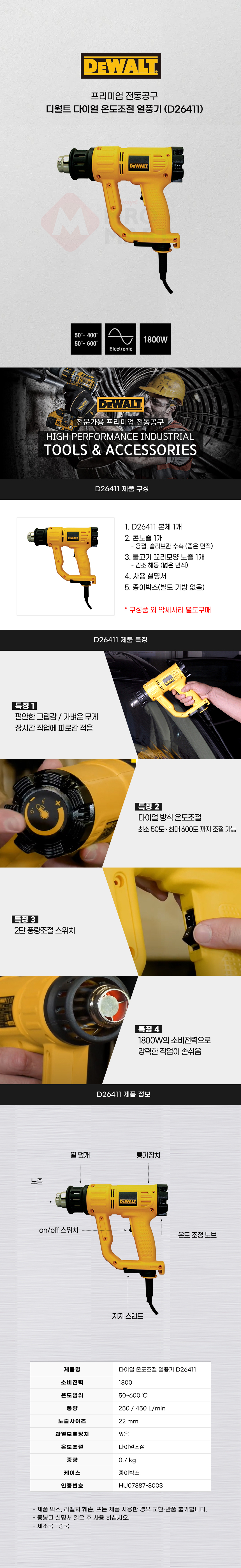 디월트 1800W 다이얼 온도조절 히팅건 열풍기 D26411