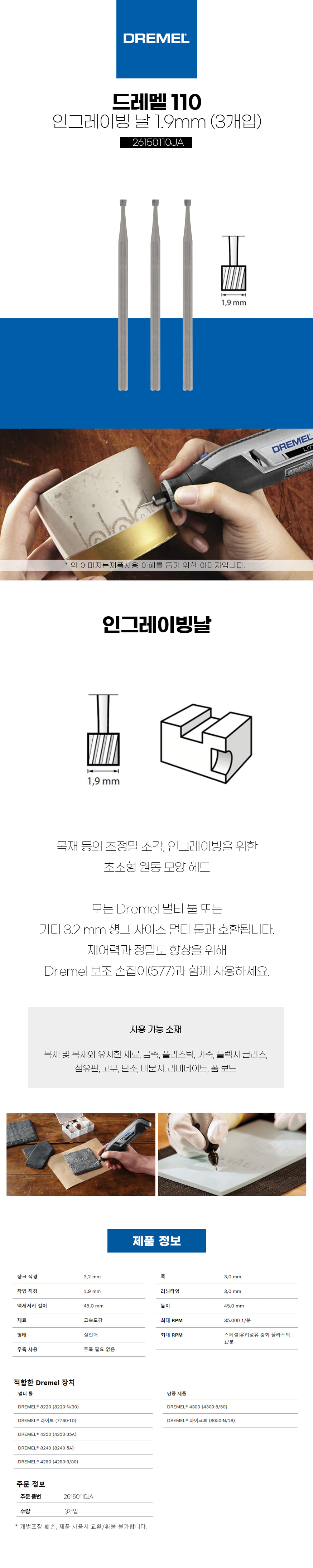 드레멜 110 인그레이빙날 1.9mm 3개입 26150110JA 목재 금속 플라스틱 조각 로터리툴