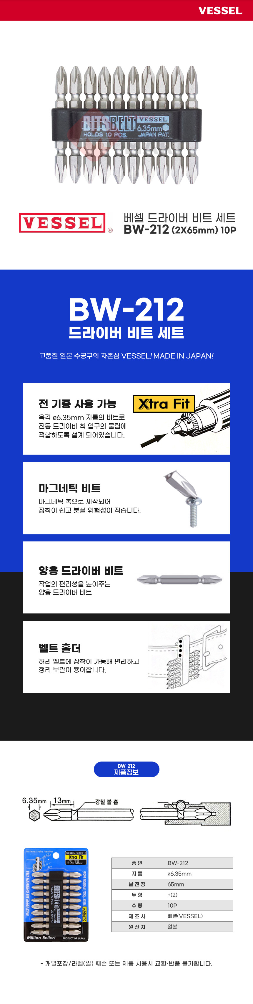 베셀 드라이버 비트 세트 BW-212 10P 전동 양용 십자
