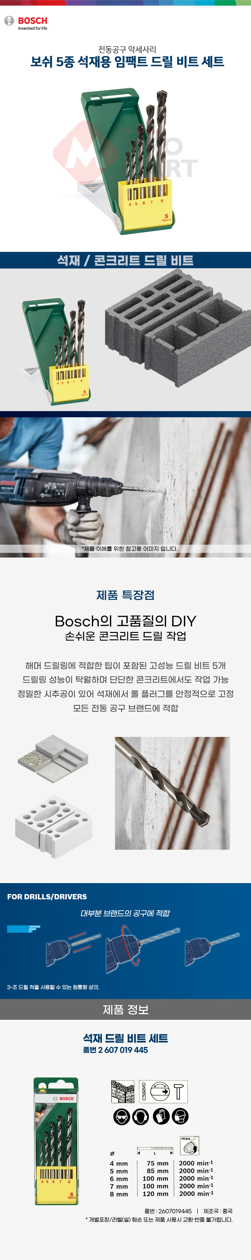 보쉬 석재용 드릴 비트 5set 2607019445 콘크리트 석재 해머 임팩트