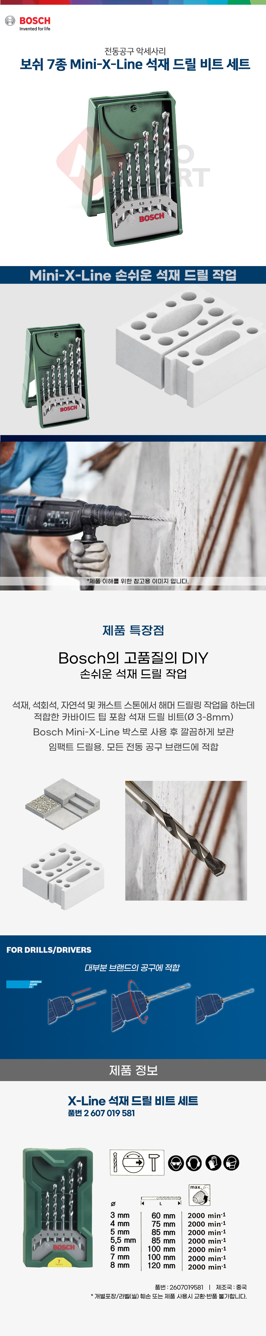 보쉬 X-LINE 임팩트 석재용 드릴 비트 세트 7set 2607019581