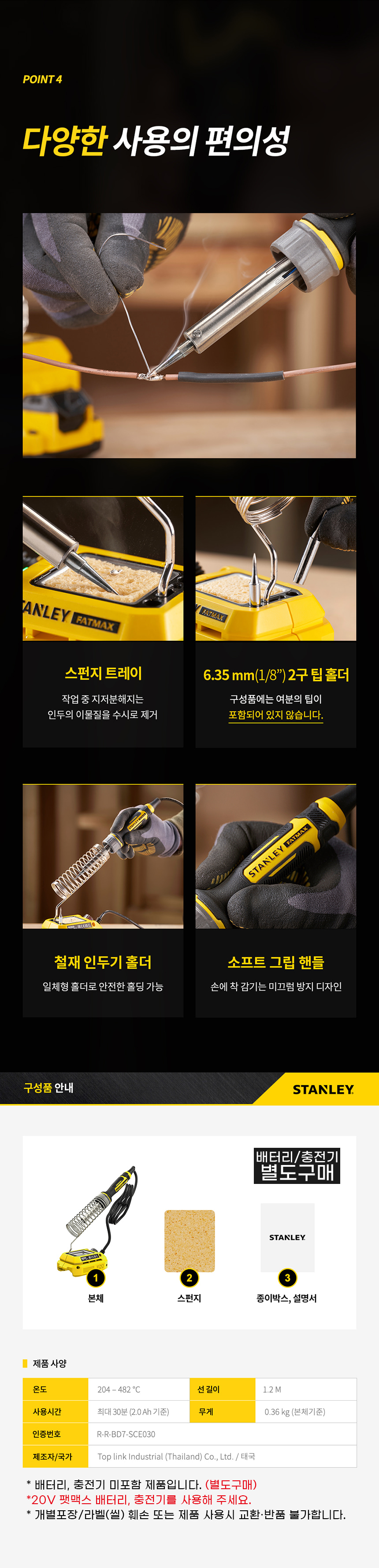 스탠리 팻맥스 20V MAX 충전 인두기 베어툴 SCE040 납땜기 인두 땜납 납