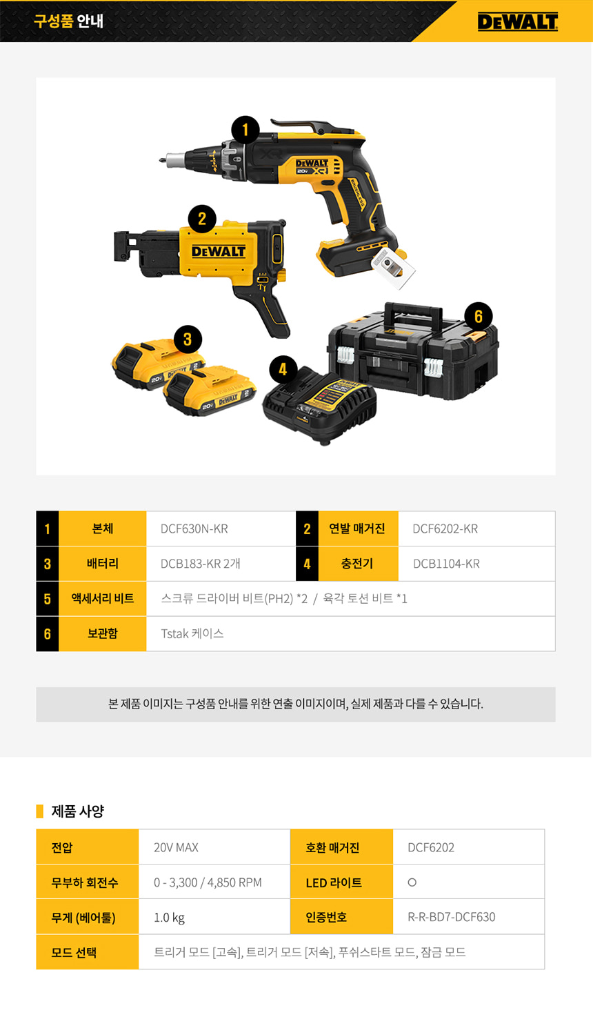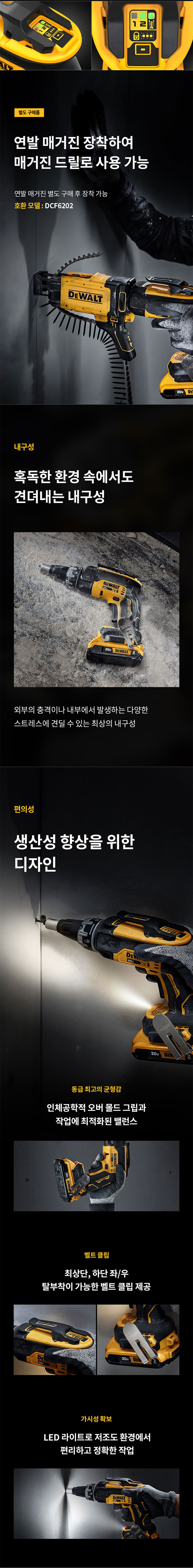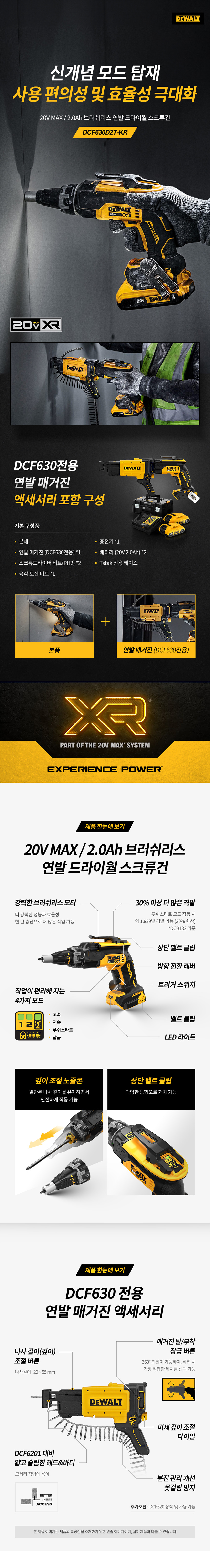 디월트 20V MAX 2.0Ah 충전 브러쉬리스 연발 드라이월 스크류건 DCF630D2T 배터리 세트
