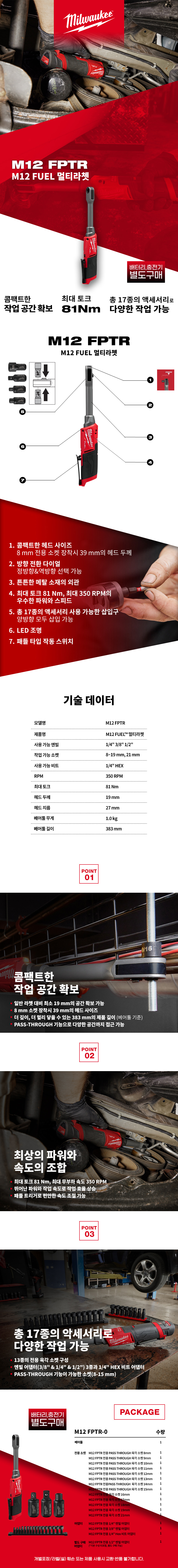 밀워키 12V FUEL 멀티 라쳇 베어툴 M12 FPTR-0 액세서리 포함