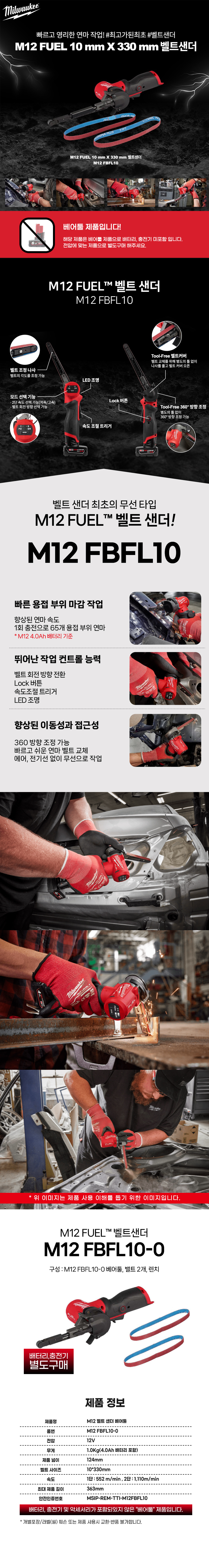 밀워키 12V FUEL 10mmX330mm 충전 미니 벨트 샌더 베어툴 M12 FBFL10-0 샌딩 샌딩기