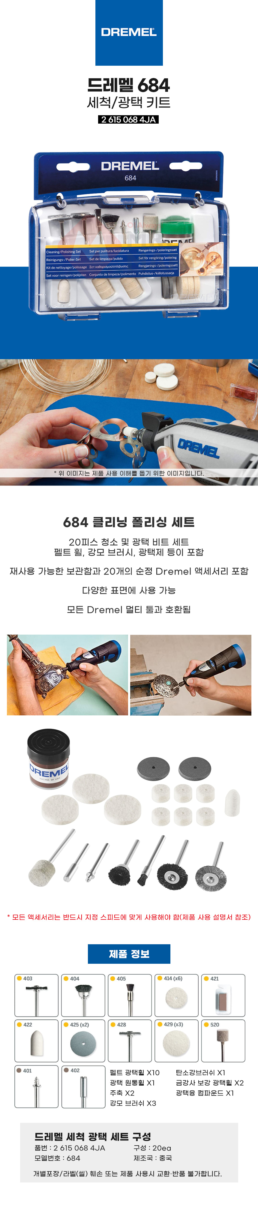 드레멜 684 세척 광택 키트 26150684JA 20p 펠트휠 강모 브러쉬 원통휠