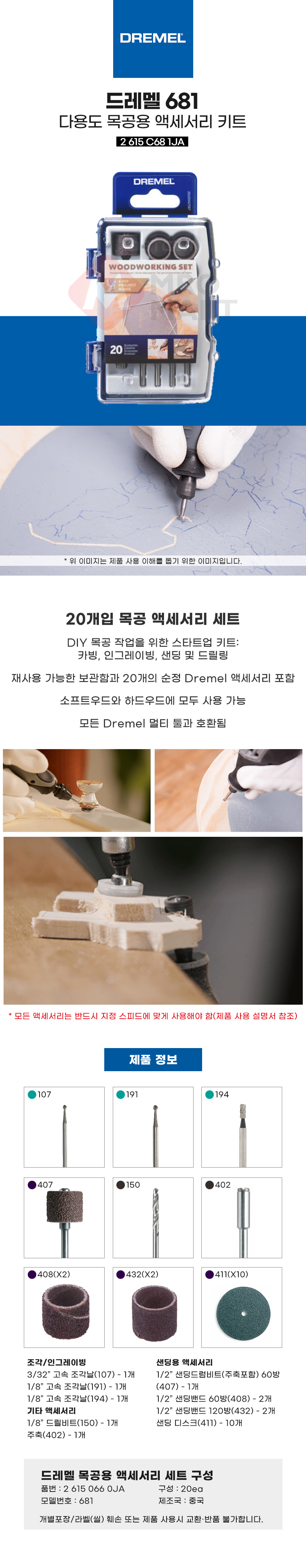 드레멜 681 다용도 목공용 액세서리 키트 2615C681JA 목공 목재 조각날 드릴 샌딩 디스크