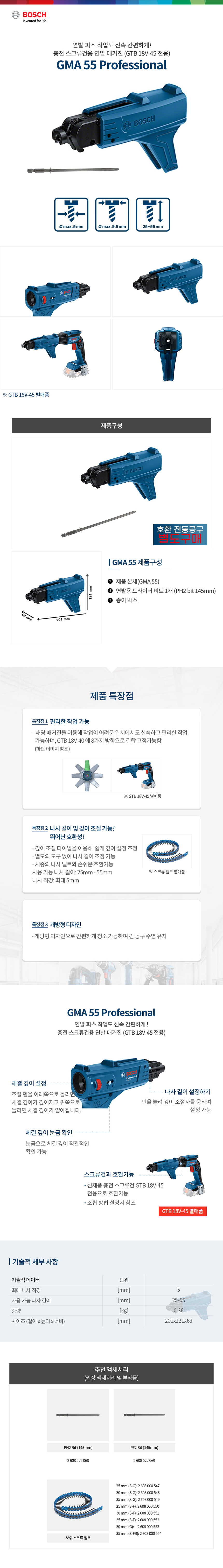 보쉬 GMA 55 충전 스크류건용 연발 매거진 1600A025GD GTB 18V-45 전용 석고보드용