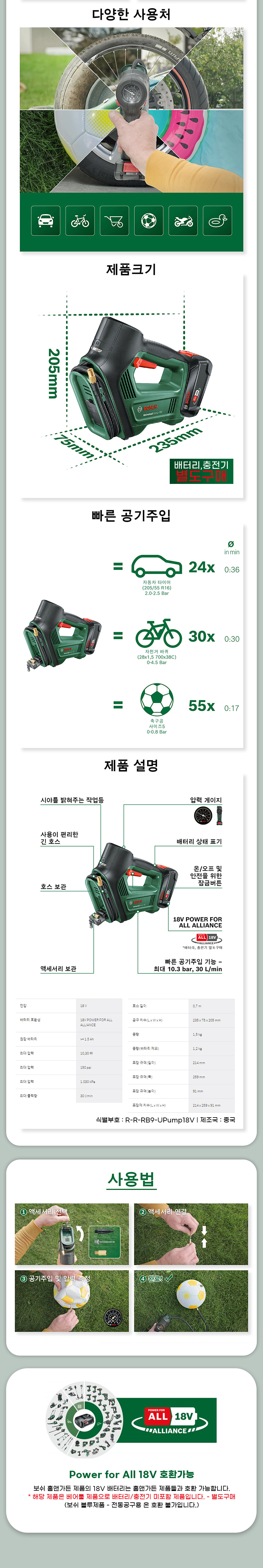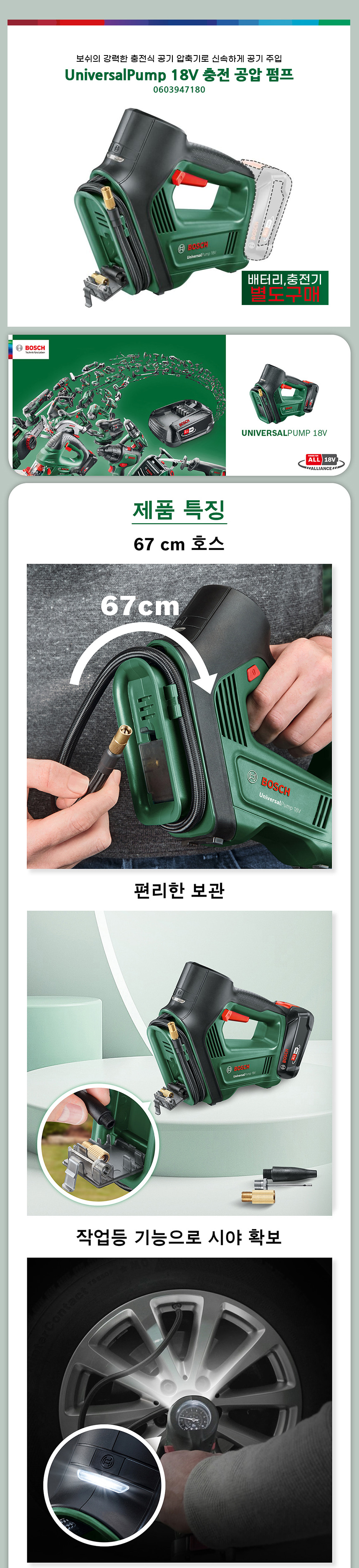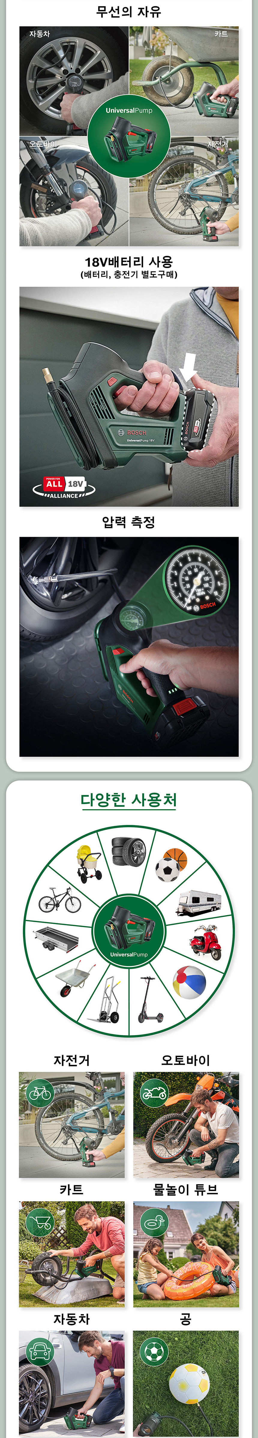 보쉬 가든툴 UniversalPump 18V 충전 공압 펌프 베어툴 0603947180 압축 공기 바람 주입기 타이어 자전거 튜브