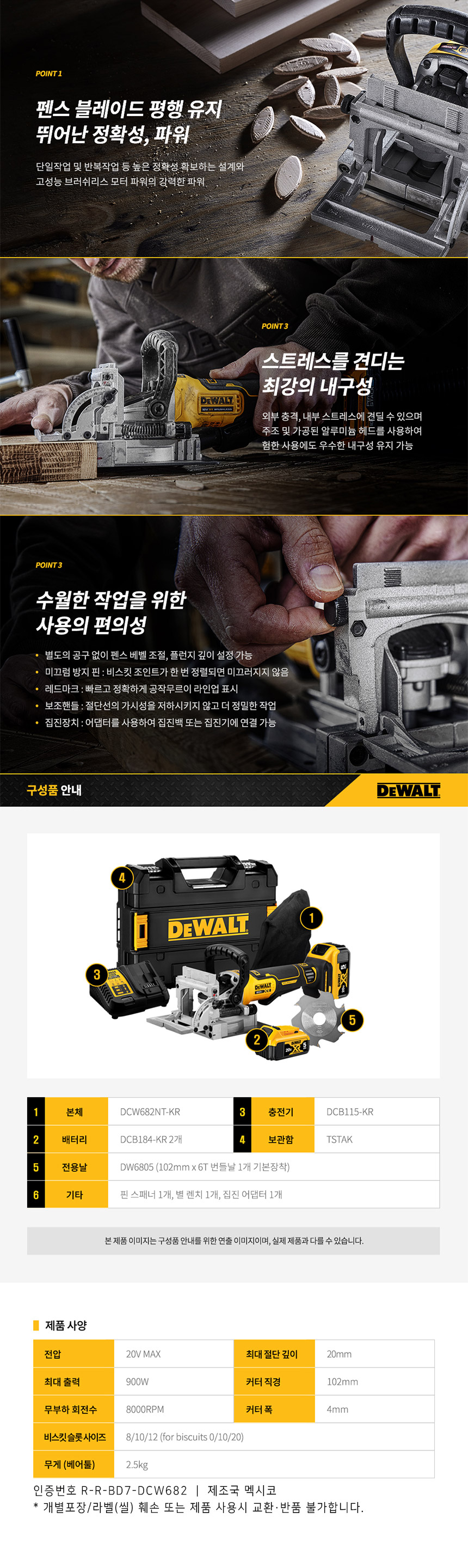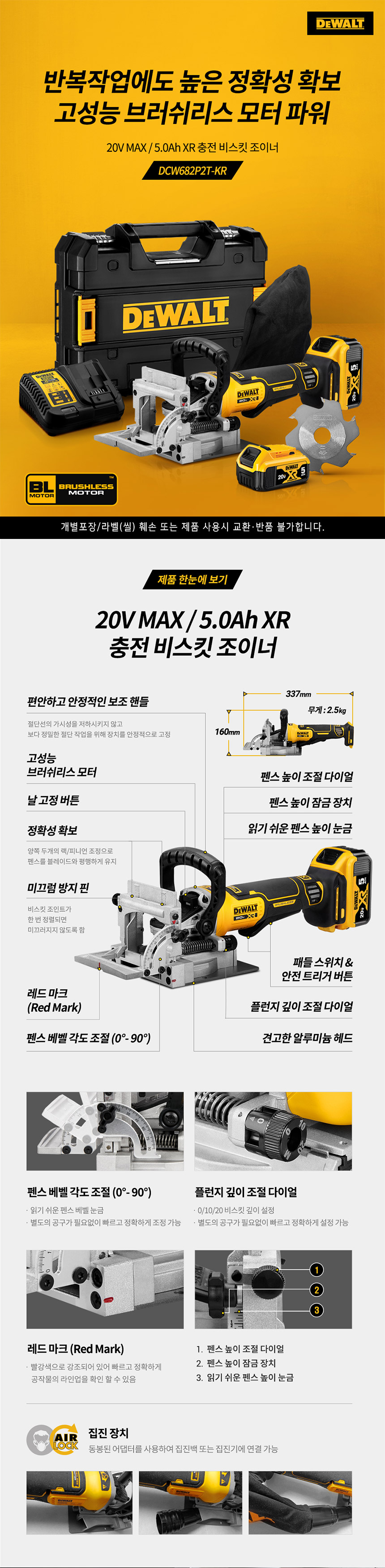 디월트 20V MAX 5.0Ah XR 충전 비스킷 조이너 배터리 세트 DCW682P2T
