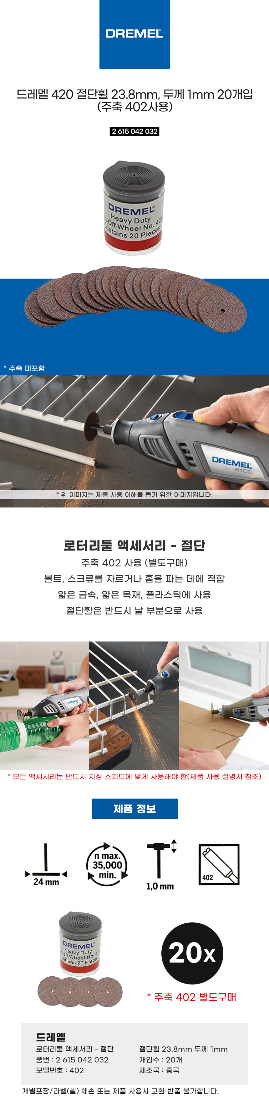 드레멜 로터리툴 액세서리 절단 휠 23.8mm 20개입 2615042032