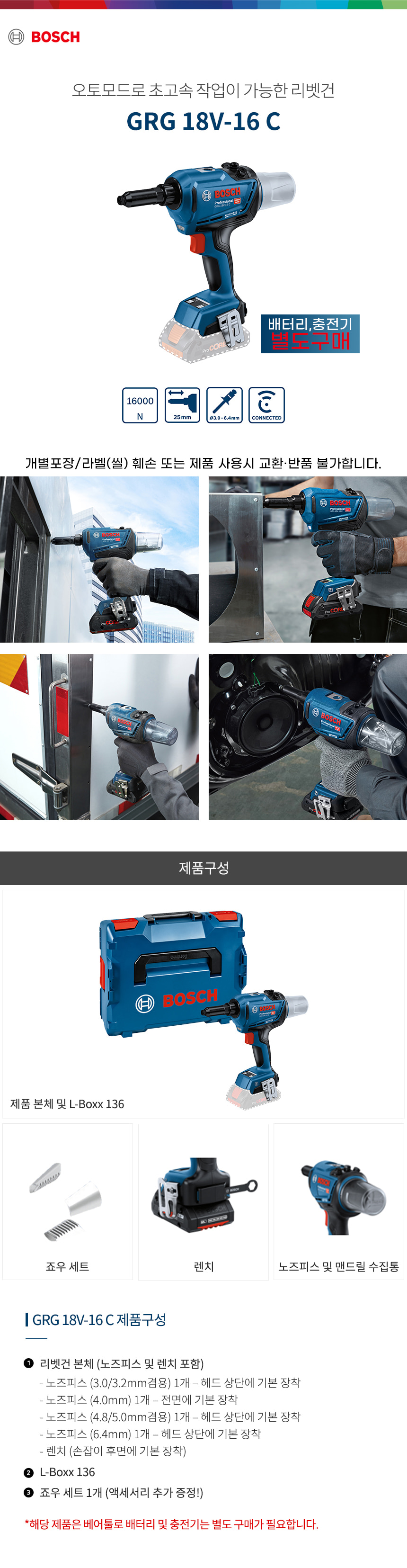 보쉬 GRG 18V-16 C 충전 리벳건 베어툴 06019K50B0