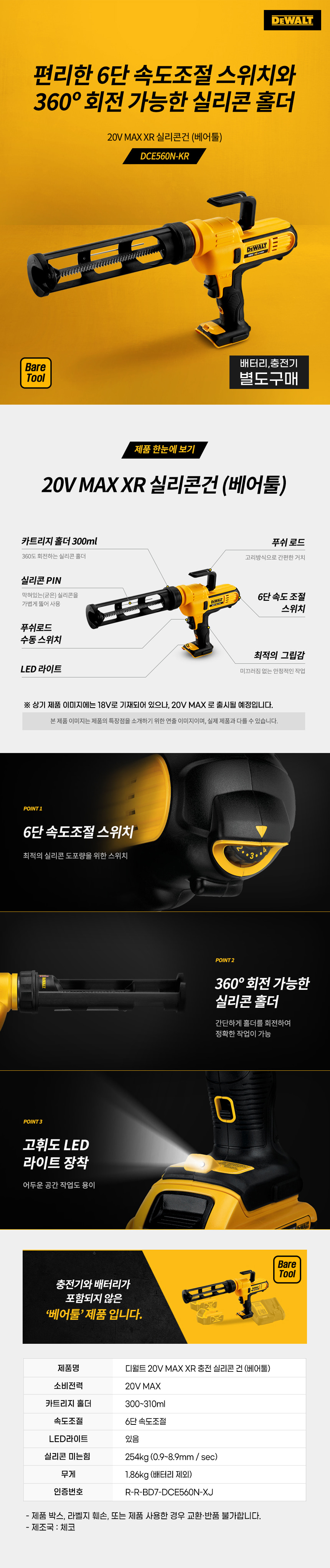 디월트 DCE560N 충전 실리콘 건 베어툴 20V MAX