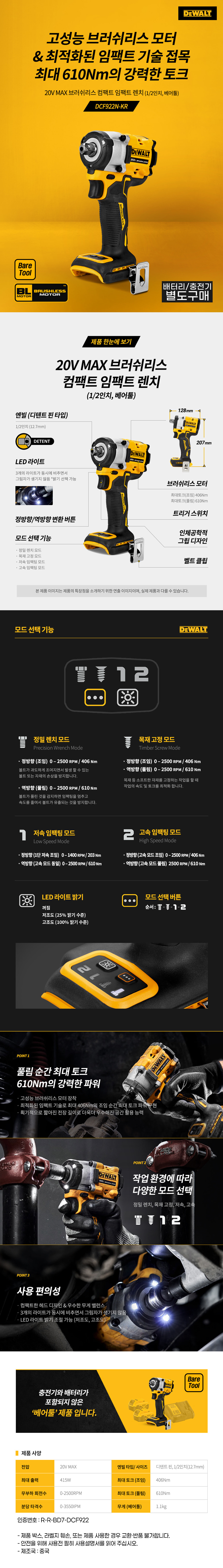 디월트 DCF922N 충전 임팩트 렌치 베어툴 목재고정 20V 18V