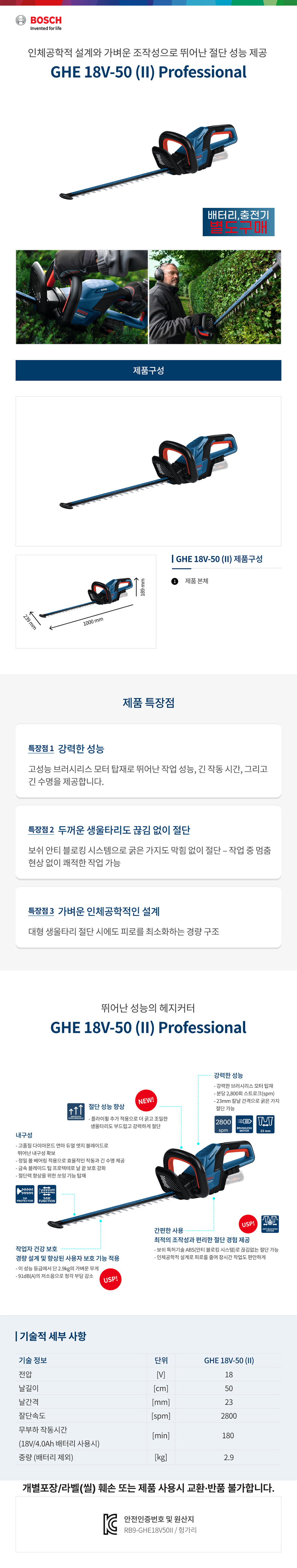 보쉬 GHE 18V-50 충전헤지커터2 베어툴 06008C96B0 전정기 조경톱 가지 치기