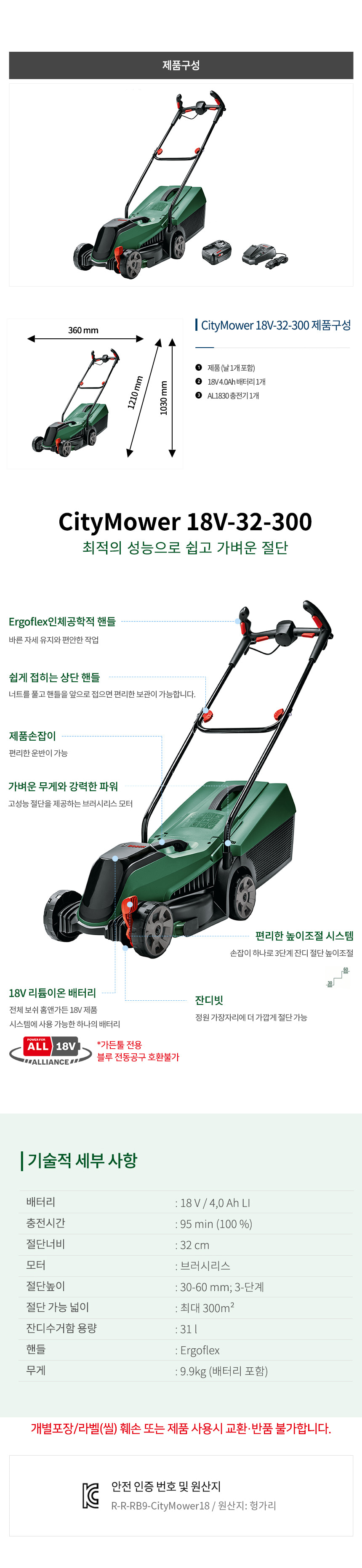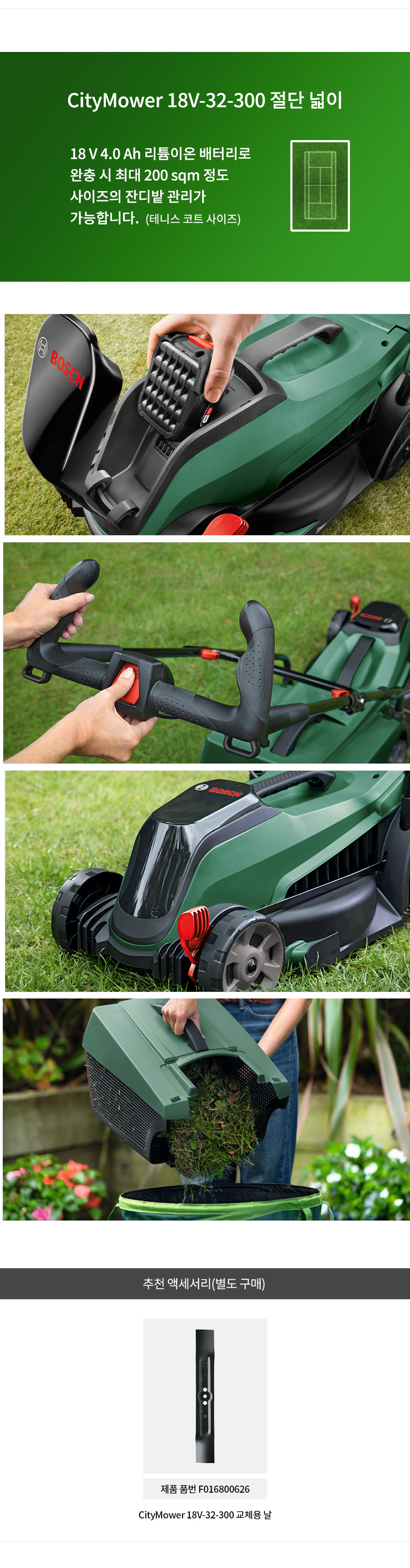보쉬 가든툴 CityMower 18V-32-300 충전 잔디 깍이 깍기 배터리 세트 06008B9AB1 제초기 예초기 풀 마당 정원