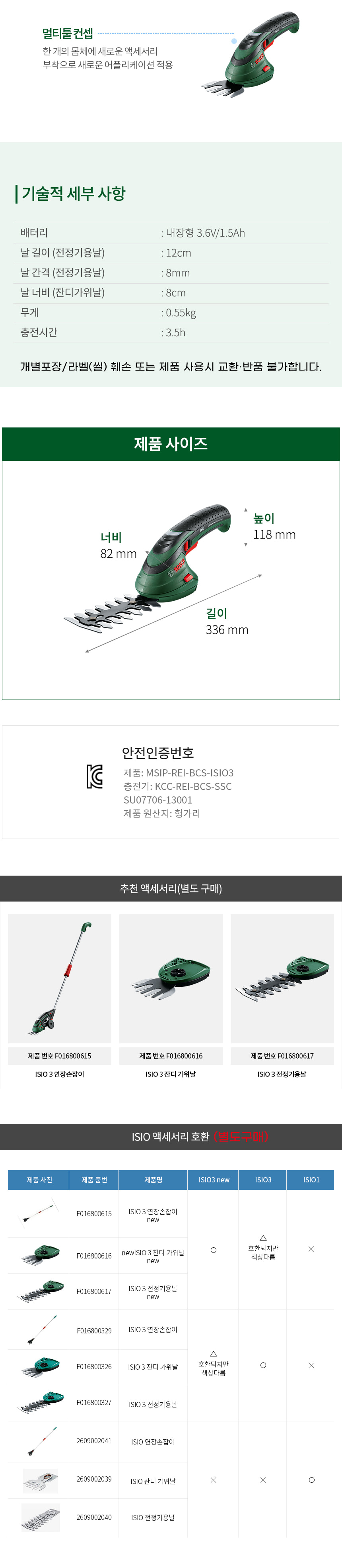 보쉬 가든툴 충전 전정 가위 ISIO3 06008331B2
