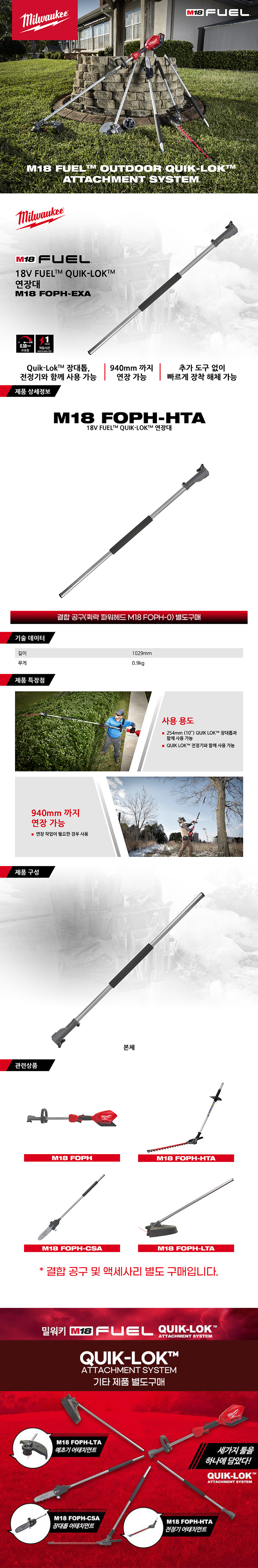 밀워키 18V QUIK-LOK 퀵락 예초기 연장대 M18 FOPH-EXA