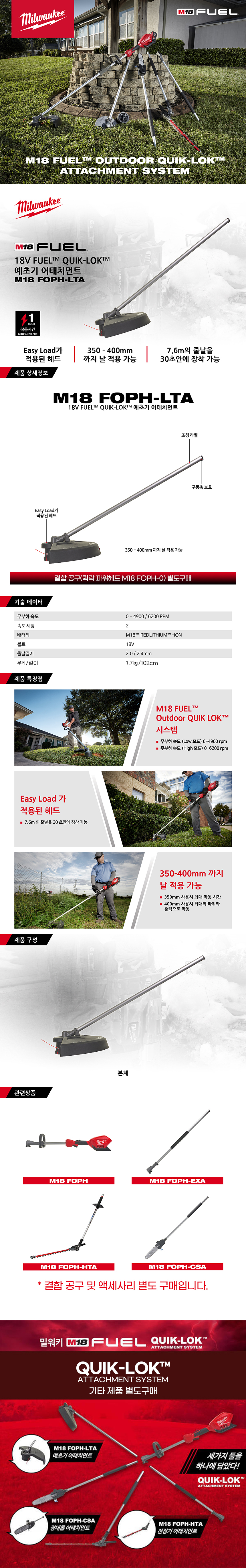 밀워키 18V QUIK-LOK 퀵락 예초기 어태치먼트 M18 FOPH-LTA 잔디 벌초 정원 관리