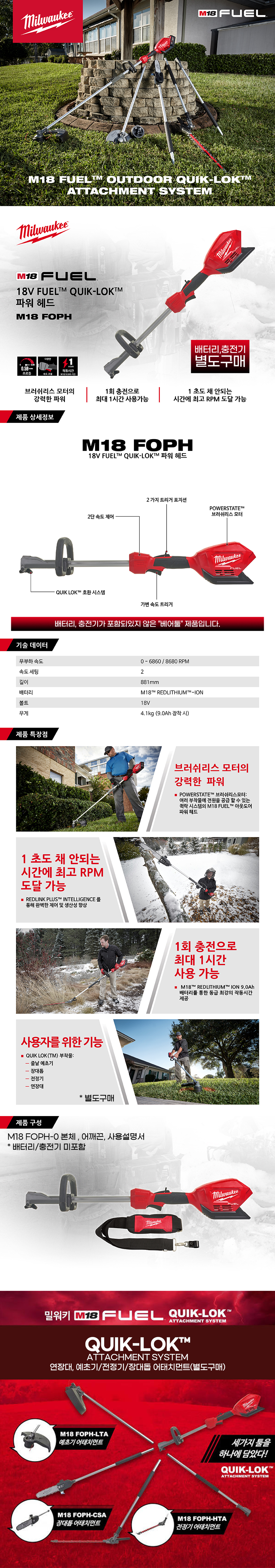 밀워키 18V QUIK-LOK 충전 퀵락 파워 헤드 베어툴 M18 FOPH-0 전정기 예초기 장대톱