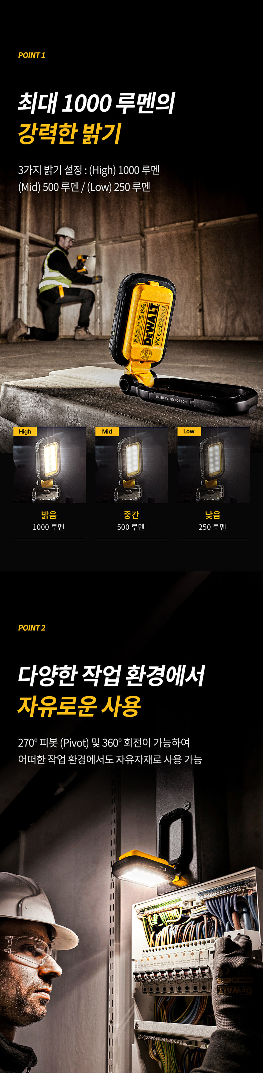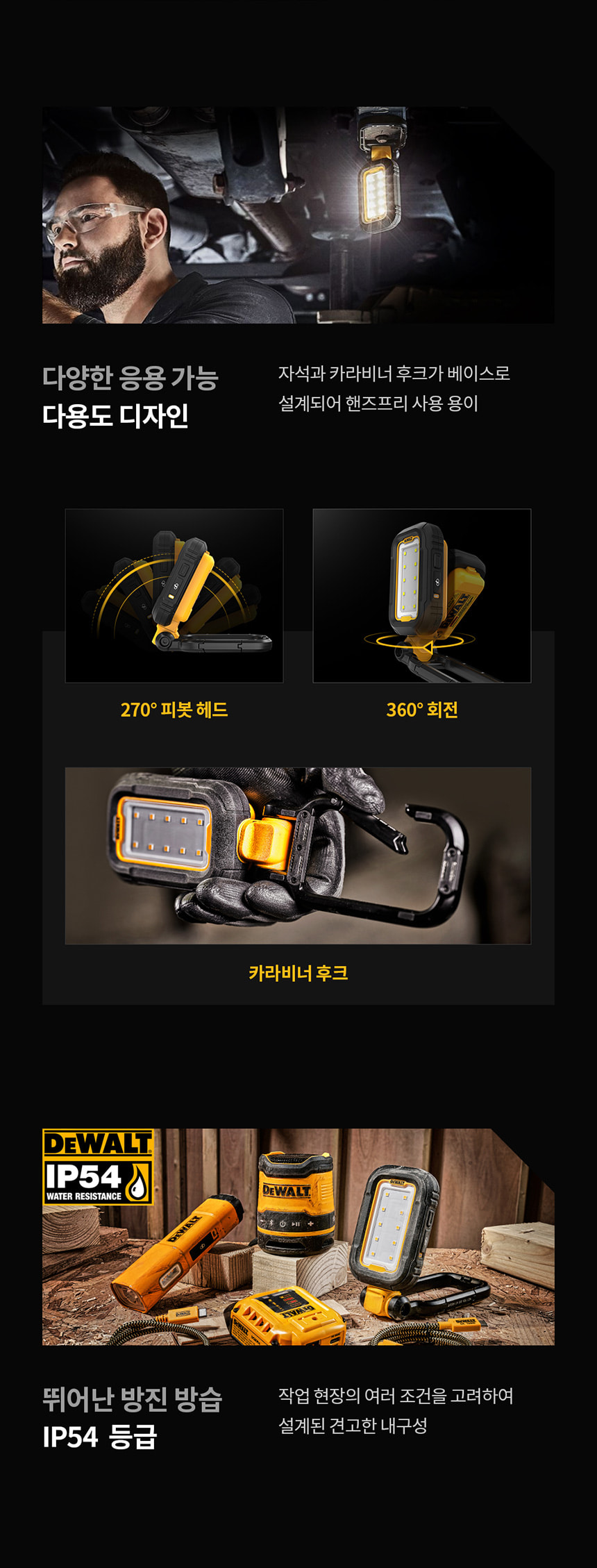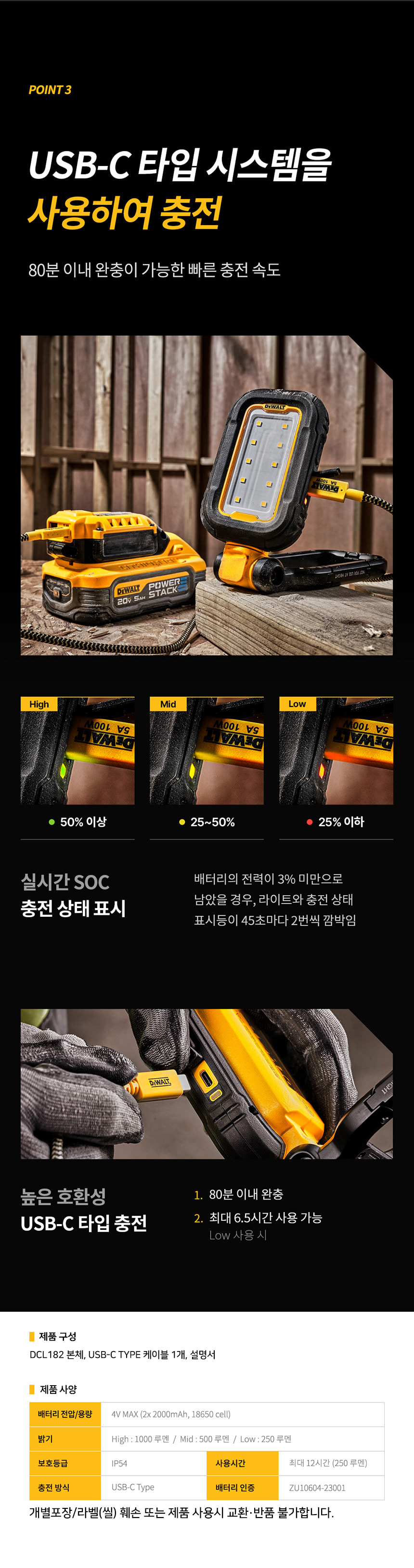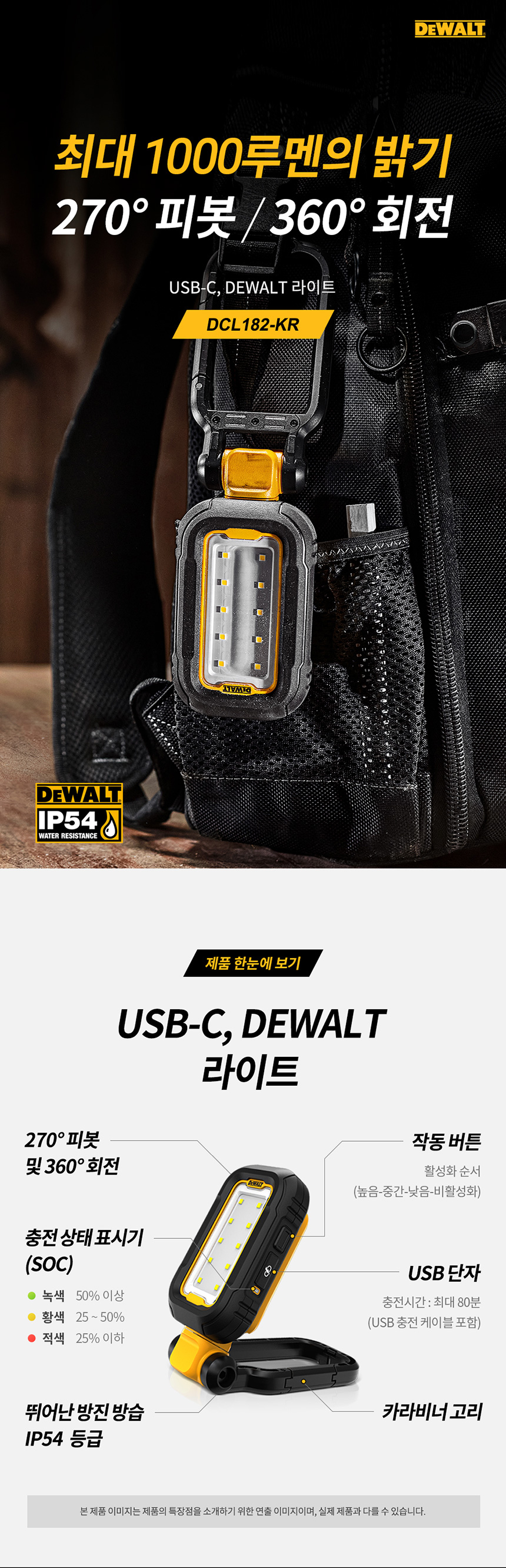 디월트 DCL182 LED 라이트 USB-C 작업등 손전등 휴대용 후레쉬 랜턴 충전식 캠핑 현장
