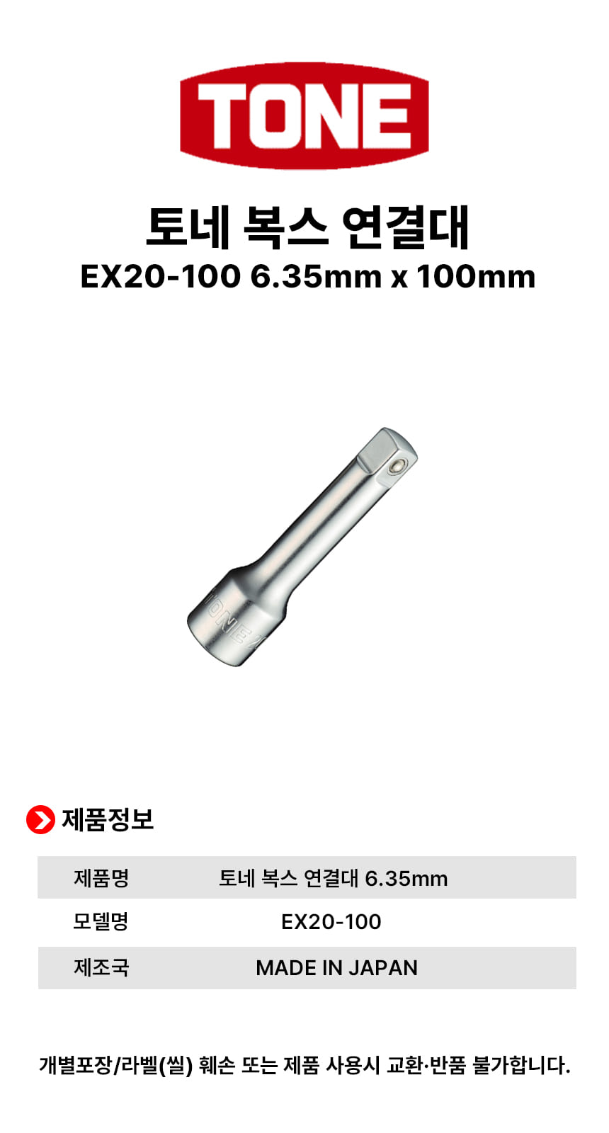 토네 복스 연결대 EX20-100 6.35mm x 100mm 비트 생크 어댑터 아답타 복스 수작업