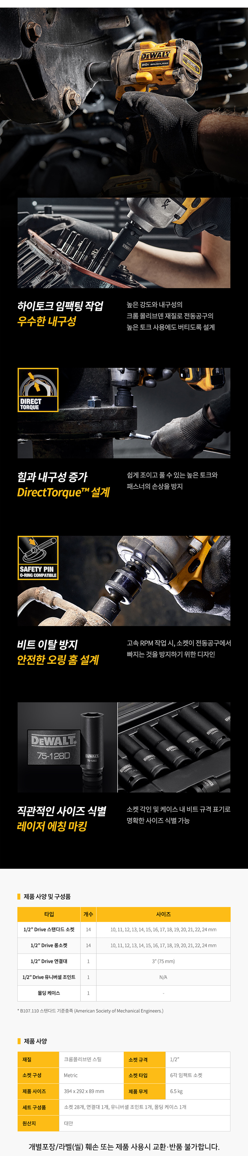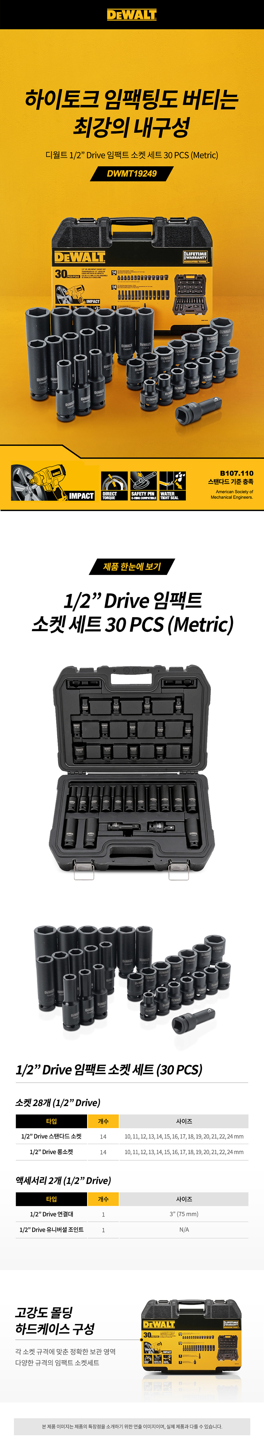 디월트 1/2인치 Drive 임팩트 소켓 세트 30팩 (Metric) DWMT19249 육각 복스대 복스알 라쳇 복스 렌치