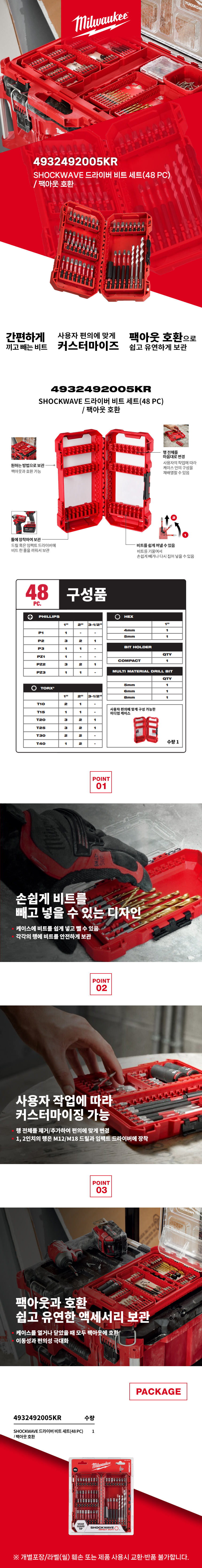 밀워키 4932492005KR SHOCKWAVE 드라이버 비트 세트 48pcs 팩아웃 호환